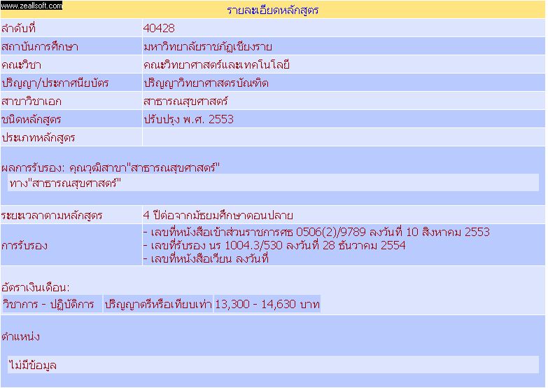 3. ผลการรับรอง: คุณวุฒิสาขา "สาธารณสุขศาสตร์" สาขาวิชาเอก "สาธารณสุขศาสตร์" (ปรับปรุง 2553)