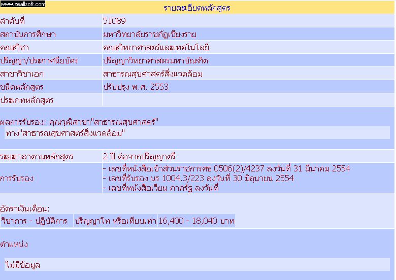 4. ผลการรับรอง: คุณวุฒิสาขา "สาธารณสุขศาสตร์" ทาง "สาธารณสุขสิ่งแวดล้อม" (ปรับปรุง 2553)